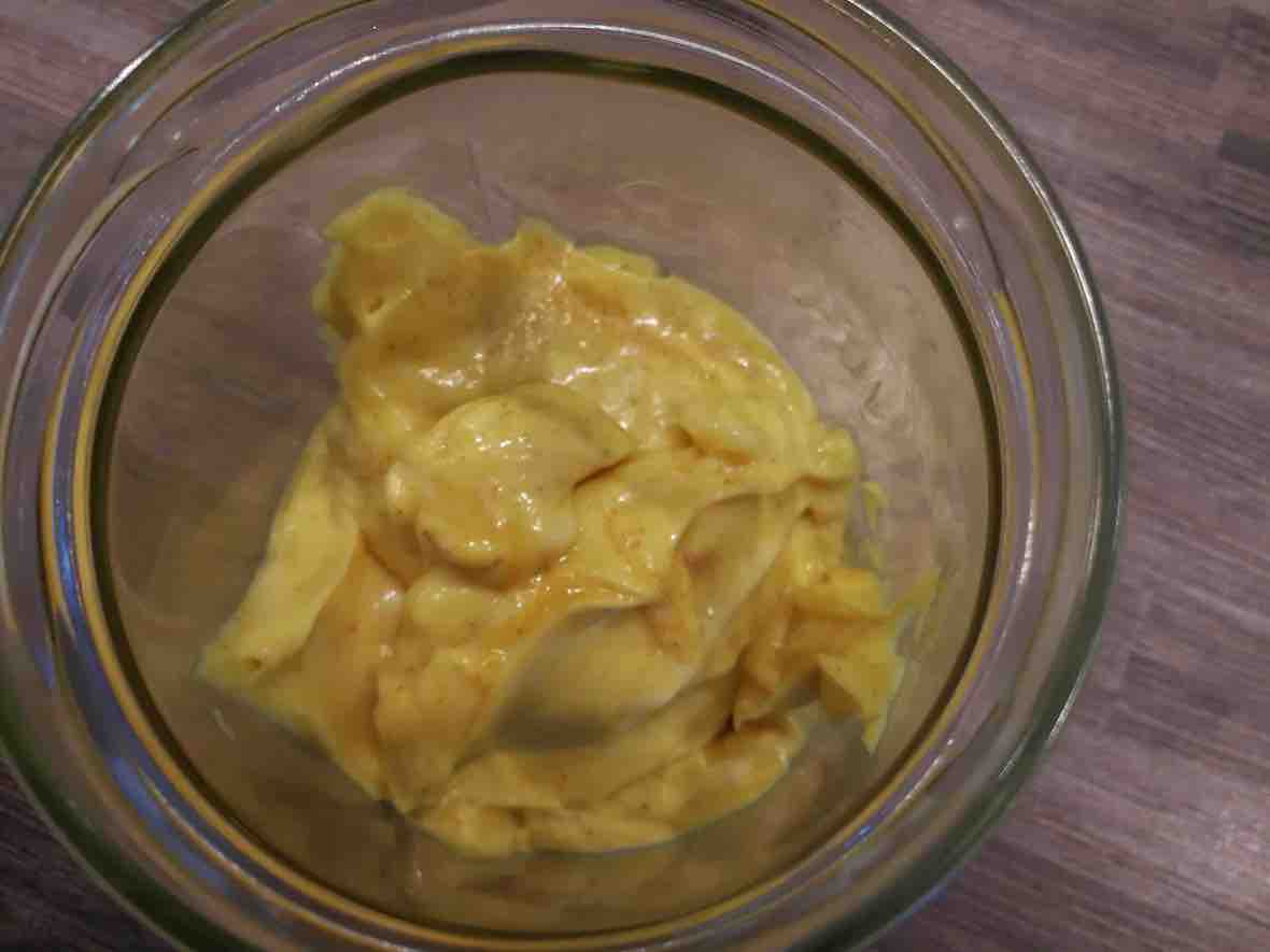 Tout d’abord, l’huile de coco va se solidifier au froid. La mayonnaise va alors avoir une texture plus proche du beurre mou que de la mayonnaise classique ce qui finalement n’est pas réellement gênant.